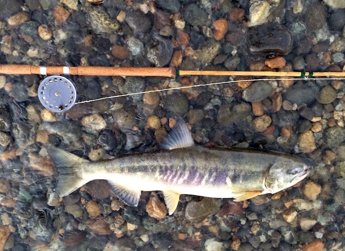 The Wet Fly No8 2015/11/2 某河川で87cm 推定6kgオーバーのアキアジを仕留めた実績あり Silky fowl Akiaji version No1 合計7本のファイターを釣り上げた。 このフライは3号のティペットからフライをもぎ取っていった強者に強制プレゼント......。 この日は他にクラレットアルダー・レディキャロラインなどのフライで楽しい釣りをエンジョイできた。 大きな自然に感謝.......。 Silky fowl Akiaji version No1 hook : Sawada SL6 tag : non tail : non butt : non body : Wool(Red・Purple) ribs : Oval(Gold) hackle : Silky fowl(scarlet) throat : Guineafowl wing : Guineafowl・Brown Mallard・Teal (Mixed)